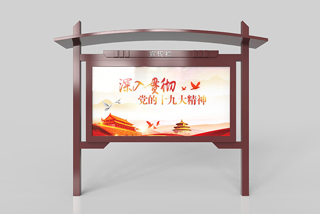 更多宣傳欄是一種VI應(yīng)用,是組織或企業(yè)單位等進(jìn)行自我宣傳的有效手段,常被應(yīng)用于街道,工廠等公共場所;一般采用不銹鋼為框架,鋼化玻璃或者耐力板為面板,鋁合金為頂棚,面板可以打開更換宣傳畫面。現(xiàn)如今,宣傳欄廣泛應(yīng)用于學(xué)校、小區(qū)、會議館、展廳等各個場地。